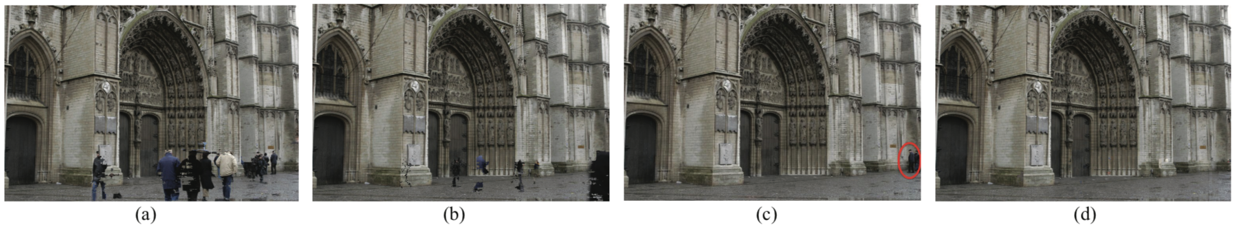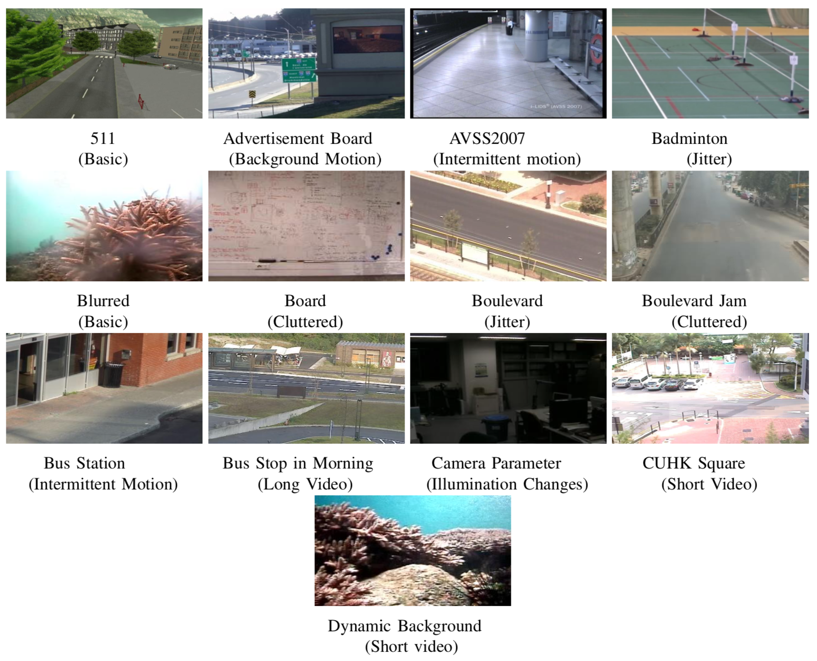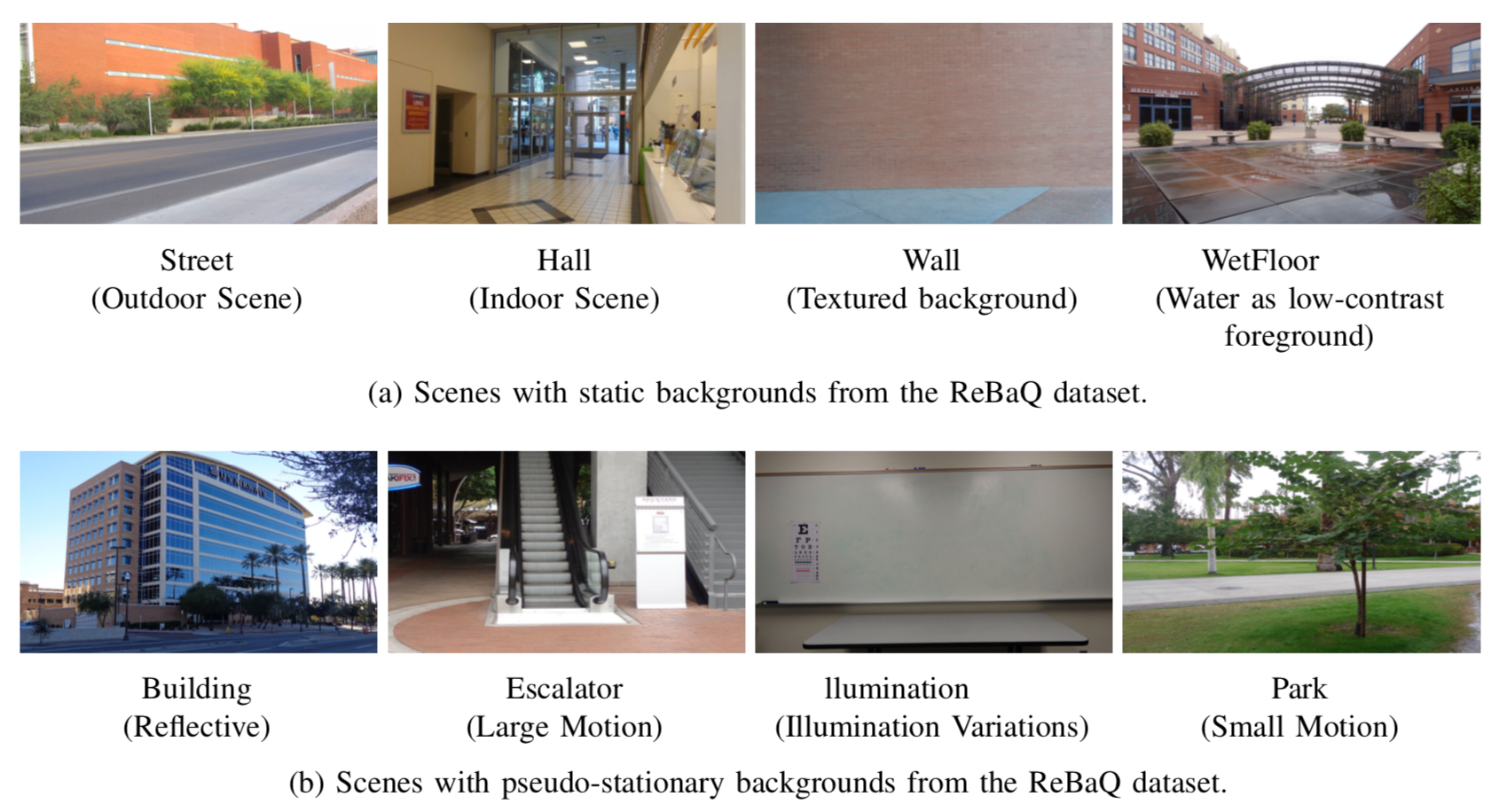 a) Sample captured reference background images for different scenes. Each reference background image corresponds to a captured scene background without foreground objects.