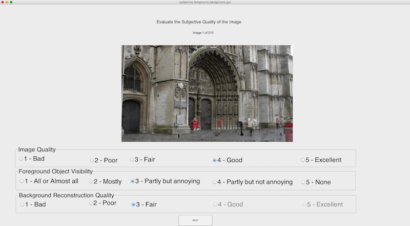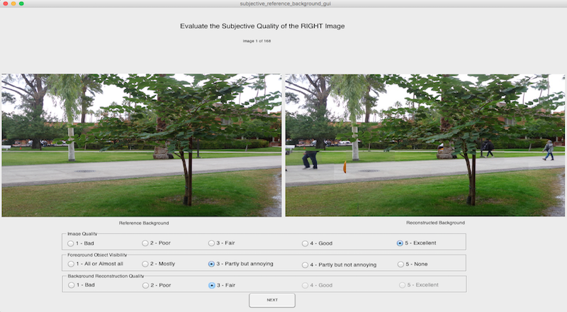 Visual quality assessment of reconstructed background imagesA clean background image is of great importance in multiple applications such as video surveillance, object tracking and context-based video encoding, but acquiring a clean background image in public areas is seldom possible. Many algorithms have been developed to initialize the background from videos and images. This research presents a database consisting of 13 different scenes that can be used for benchmarking the performance of background initialization algorithms. We also conducted a subjective study on the perceptual quality of background images that are reconstructed using existing background initialization algorithms. The obtained subjective scores were used to evaluate existing image quality metrics and their capability in predicting the perceived quality of reconstructed background images. |